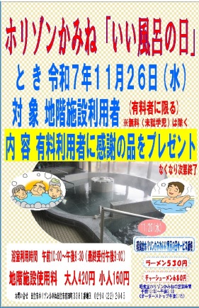 | イベント「いい風呂の日」開催について(ホリゾンかみね) |